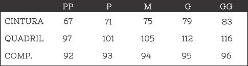 A circunferência da cintura pode aumentar até 5 cm devido ao elástico na parte de trás da cintura.